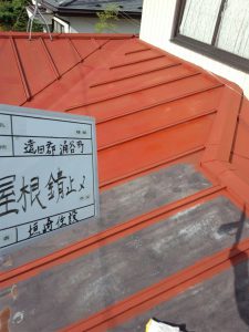 サンダーケレンで旧塗膜や、サビなどを削り落とします。