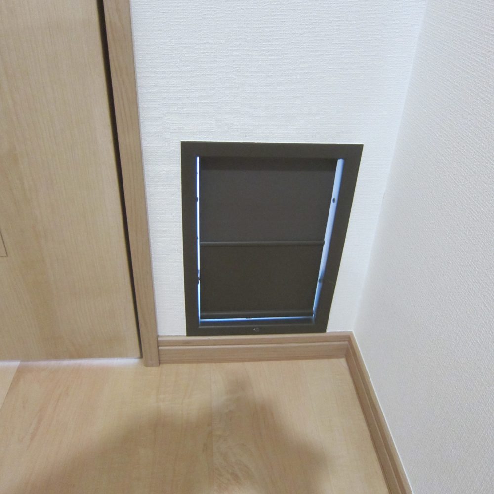 ペットが各部屋にスムーズに出入りできる様に、ペット専用のくぐりドアを取付けました。