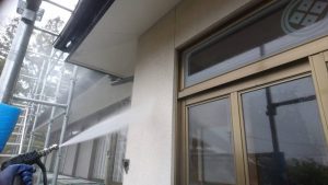 高圧洗浄を行わないと汚れの上に塗装をする事になるので、数年で剥がれてきてしまうため、必ず行わなければならない大事な作業のひとつです。