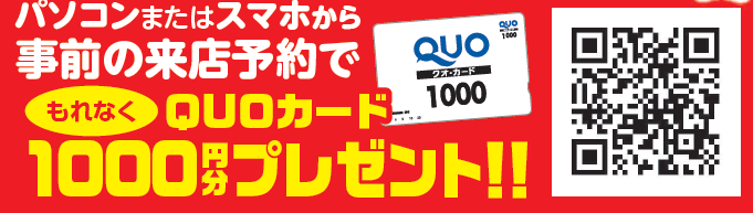 事前の来店予約でQUOカードプレゼント!!