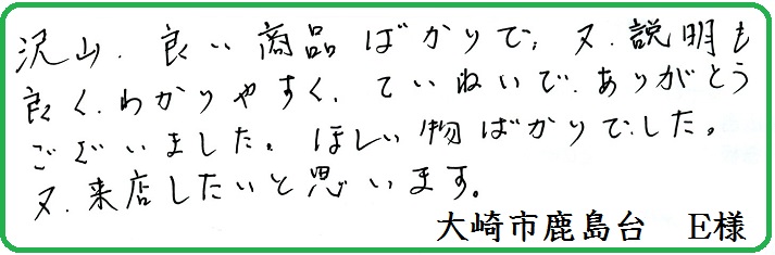 大崎市鹿島台からご来場くださいましたE様は、