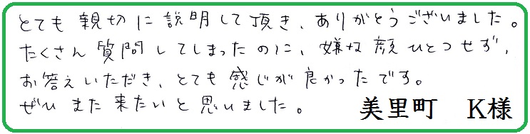 お客様が分かりやすい様に、丁寧にご説明いたしました。