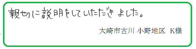 遠田郡美里町のH様は、外構工事をご検討中のため、お話を聞きにいらして下さいました。