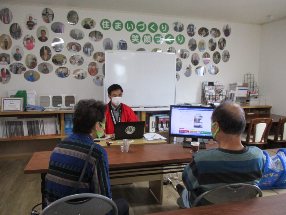 当社の施工事例や資料をご覧いただきながら、塗装について、適切な塗替え時期や塗り替え工事の正しい作業工程など、詳しくお話しさせて頂きました。