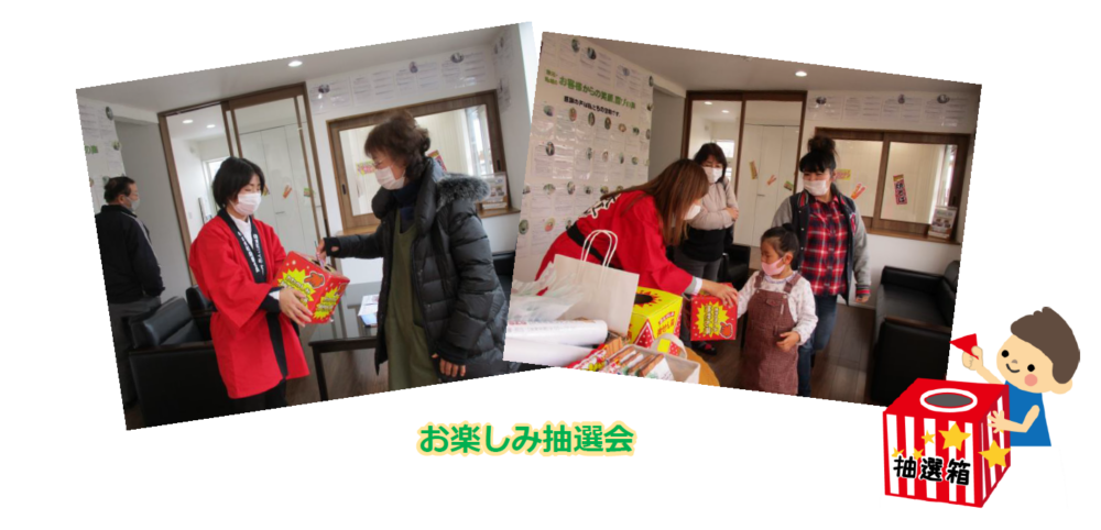 フランクフルトをふるまったり、「お楽しみ抽選会」や、「カップラーメン詰め放題」など、