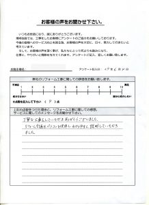 ●上記の点をつけた理由と、リフォーム工事に関しての感想、サービスに関してのメッセージをお聞かせ下さい。