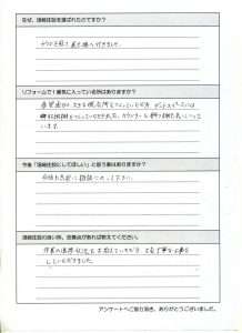 「丁寧な仕事をしていただき、ありがとうございました。」