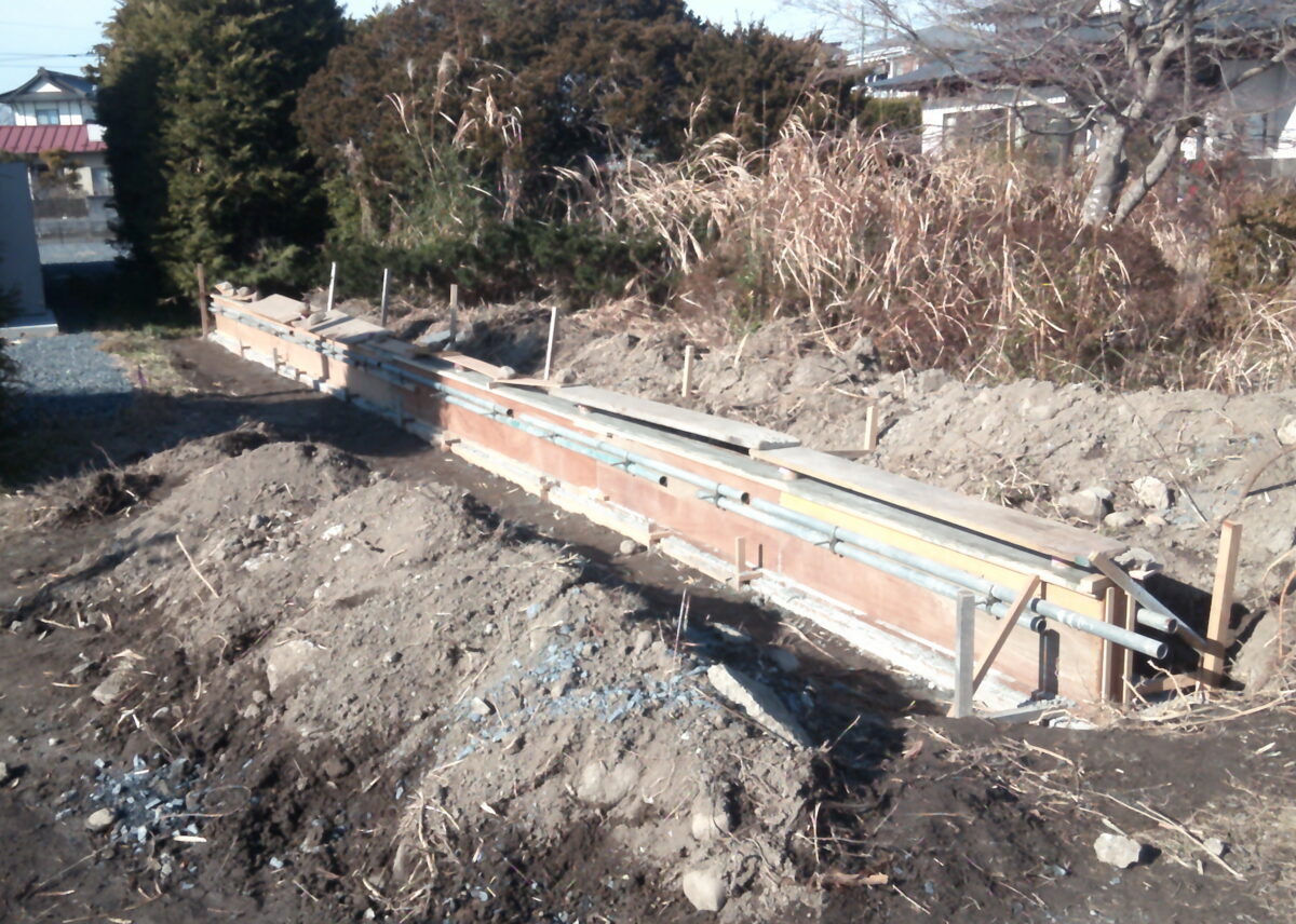 ブロック塀・カーポート・植栽の撤去をして、土留めを行っています。