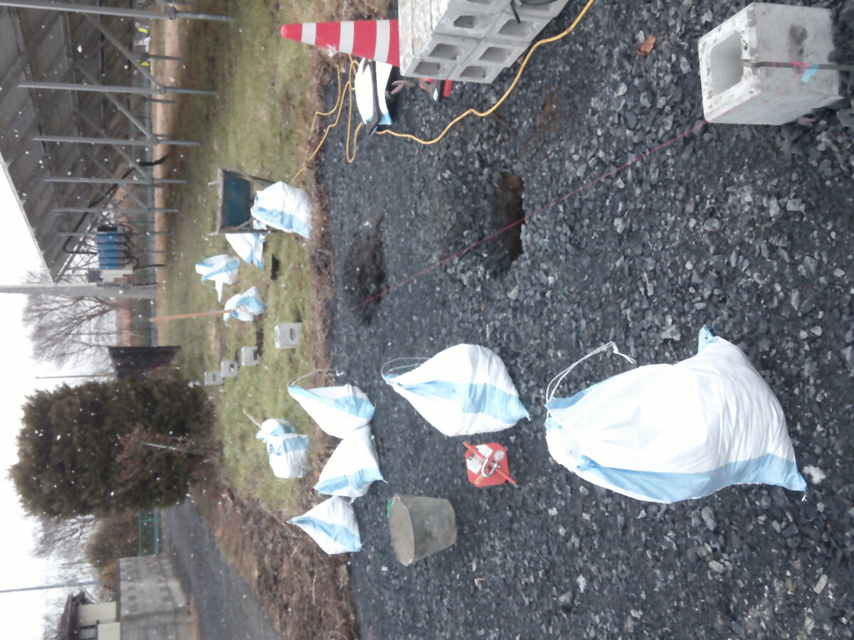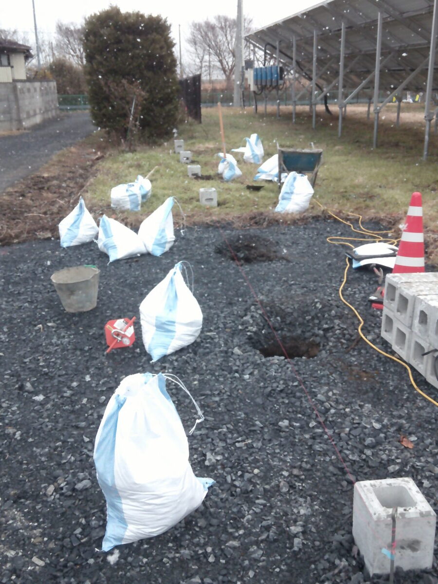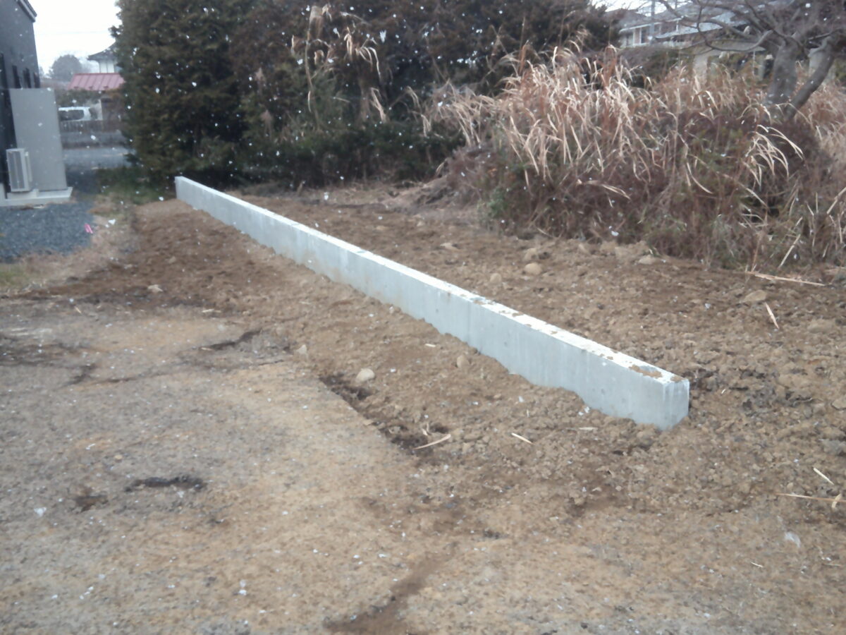 フェンスの設置とともに土留めも行いたいとのご依頼で、土留めにも利用できる基礎工事を行っています。