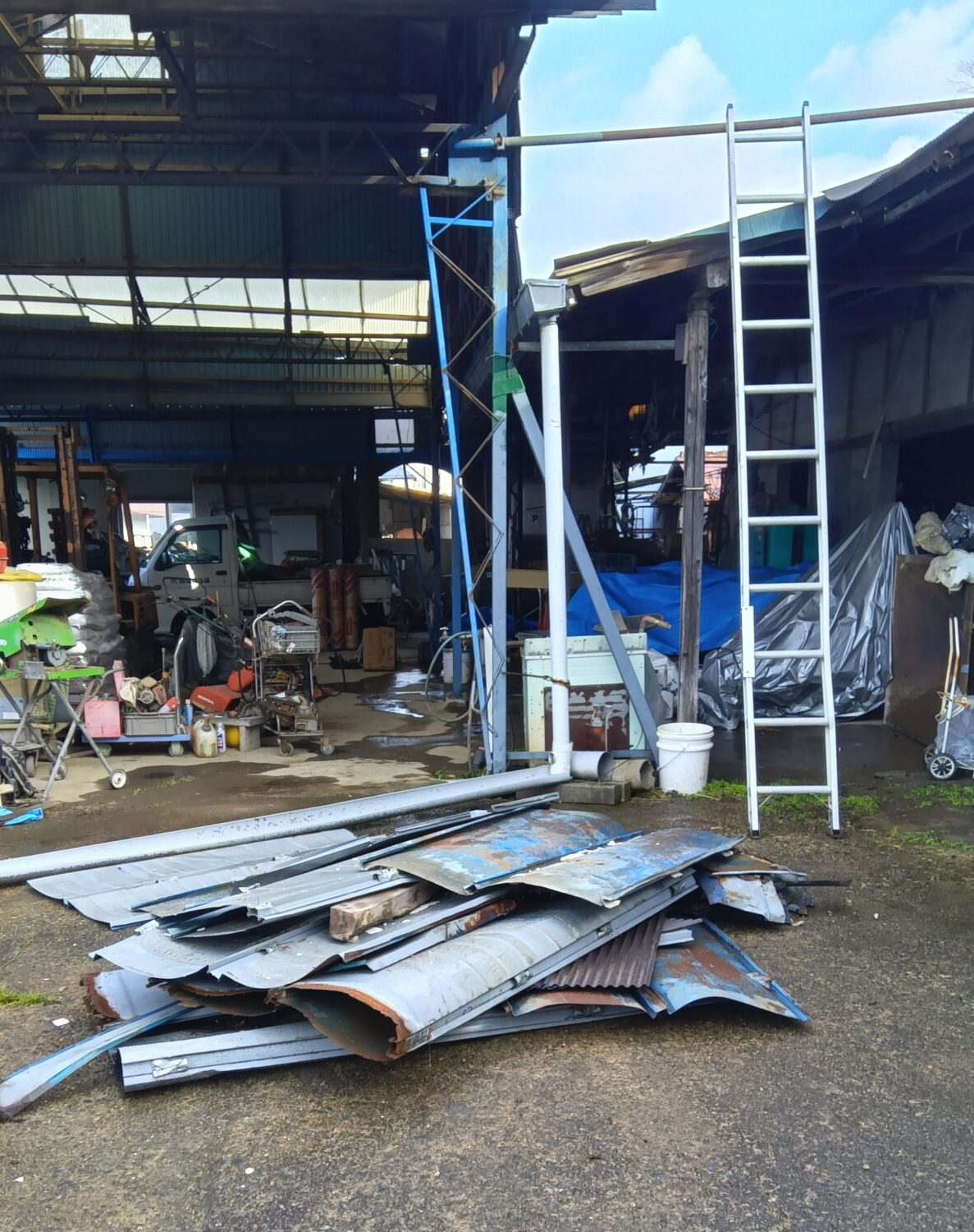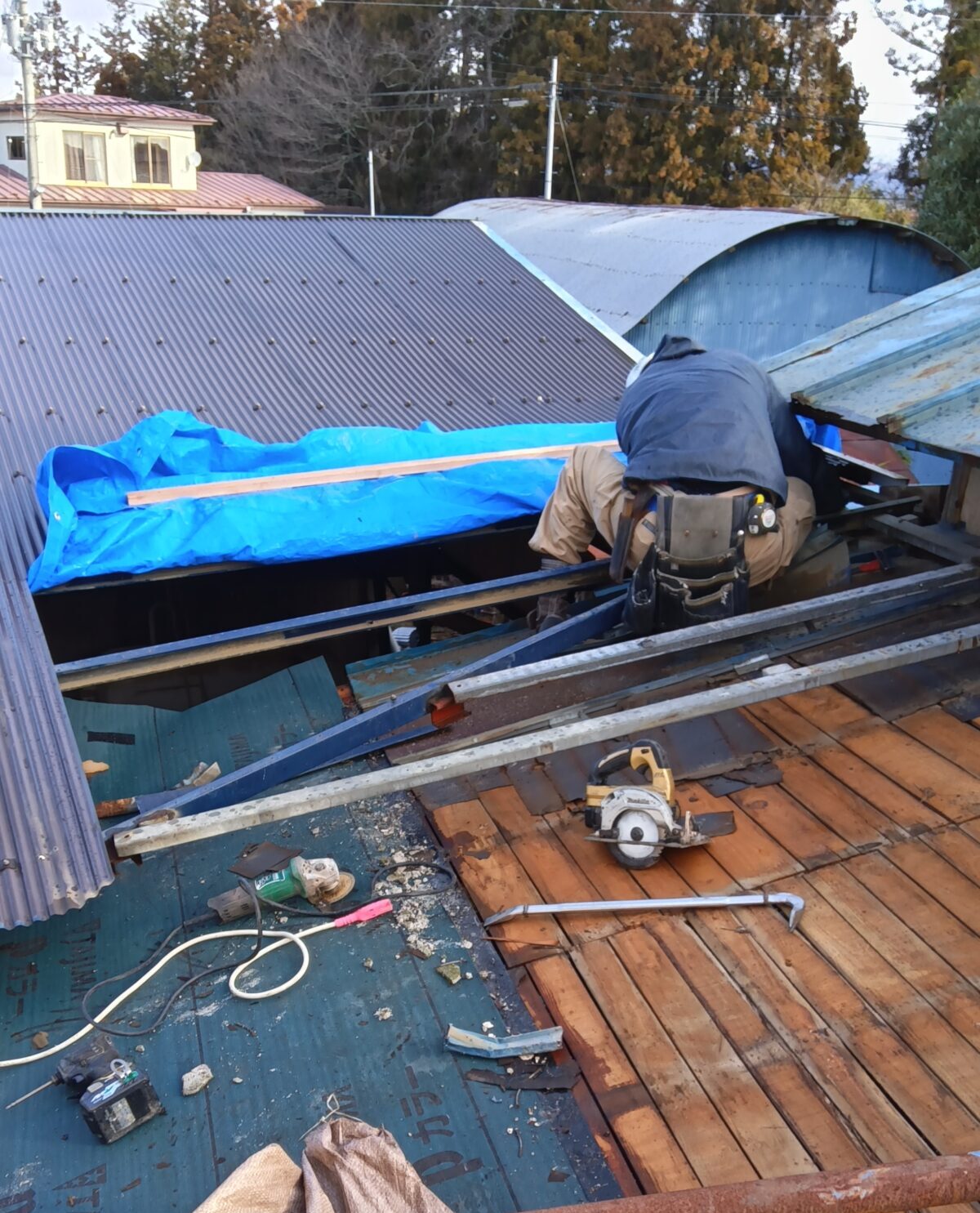作業場の屋根の葺き替え工事をさせていただいております。