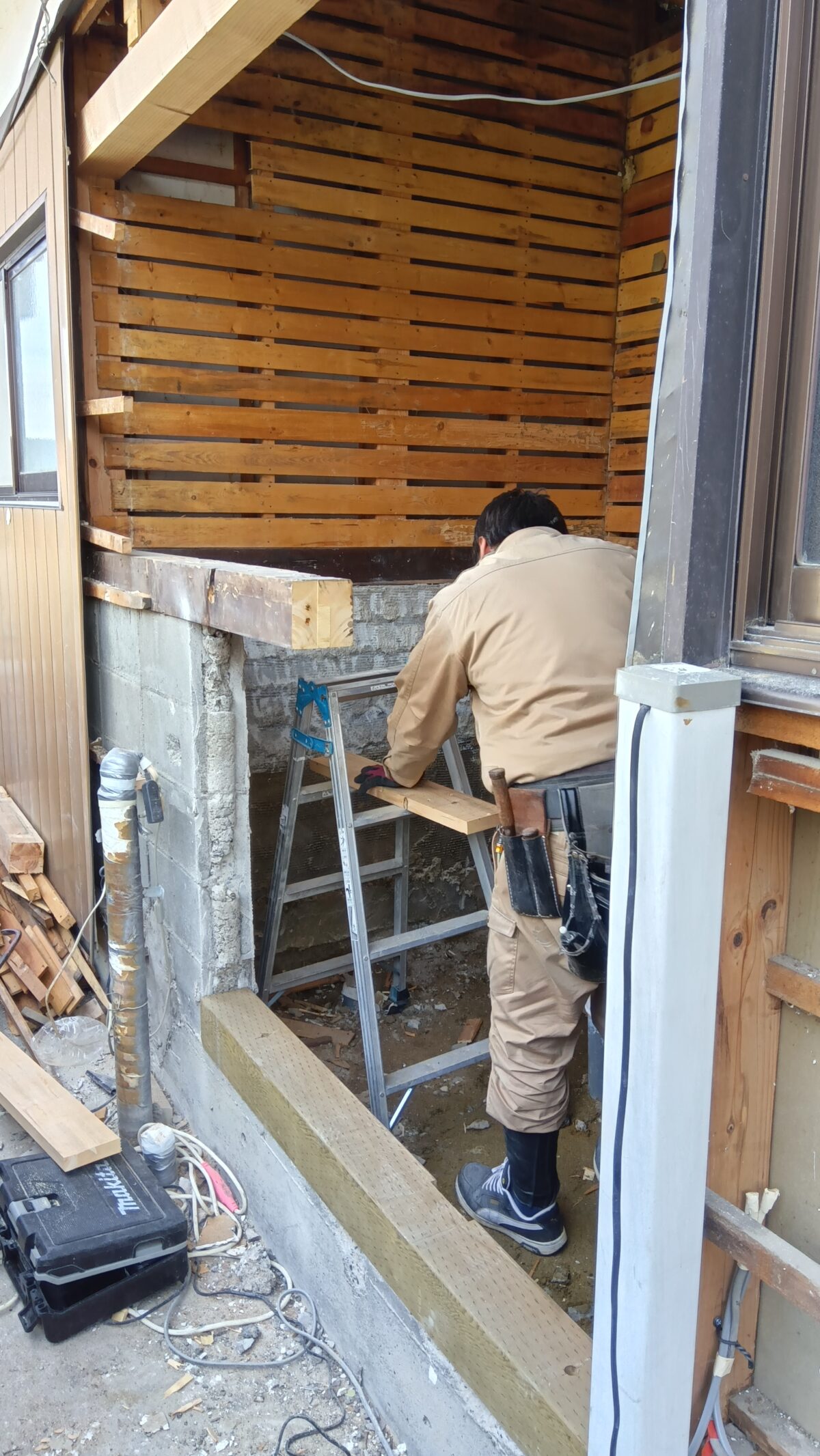 引き続き、タイル浴室&既存洗面所&既存外壁の解体を行っています。