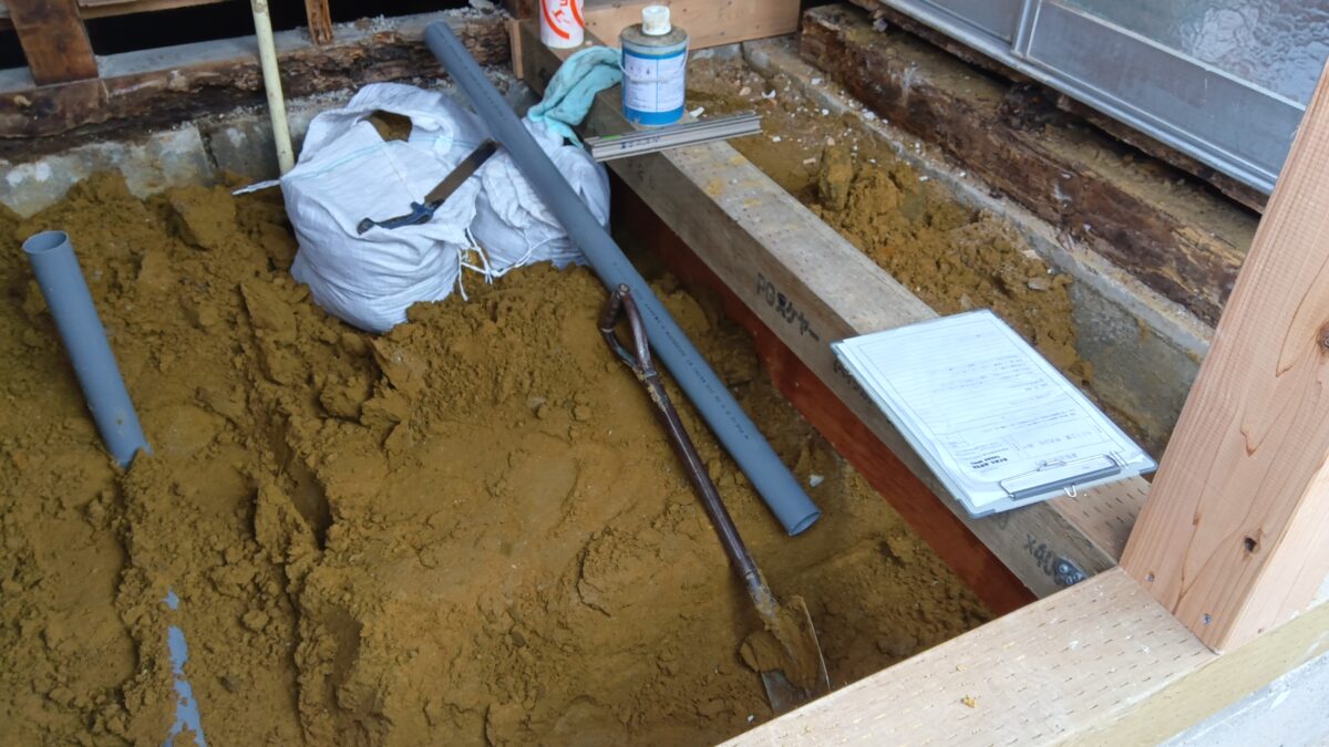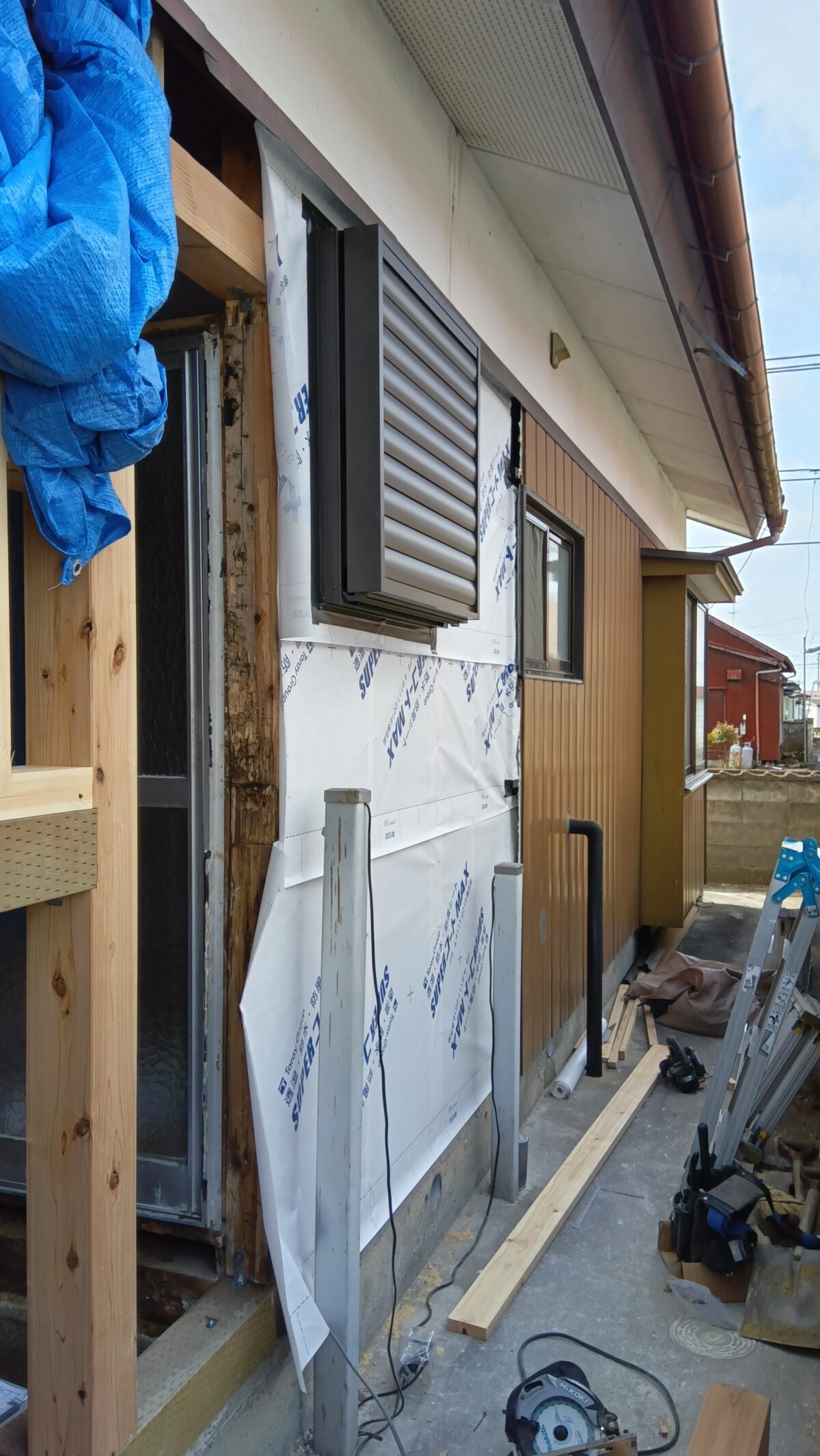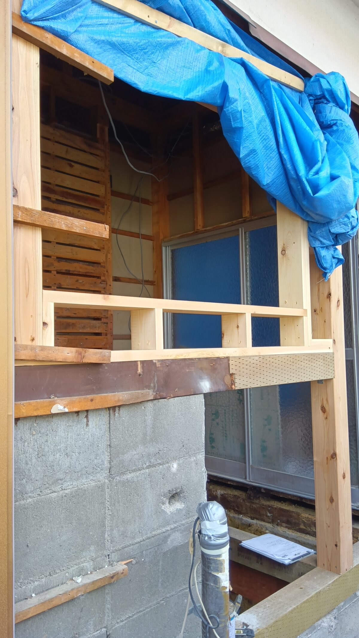 タイル浴室&既存洗面所&既存外壁の解体をして、躯体工事を行います。