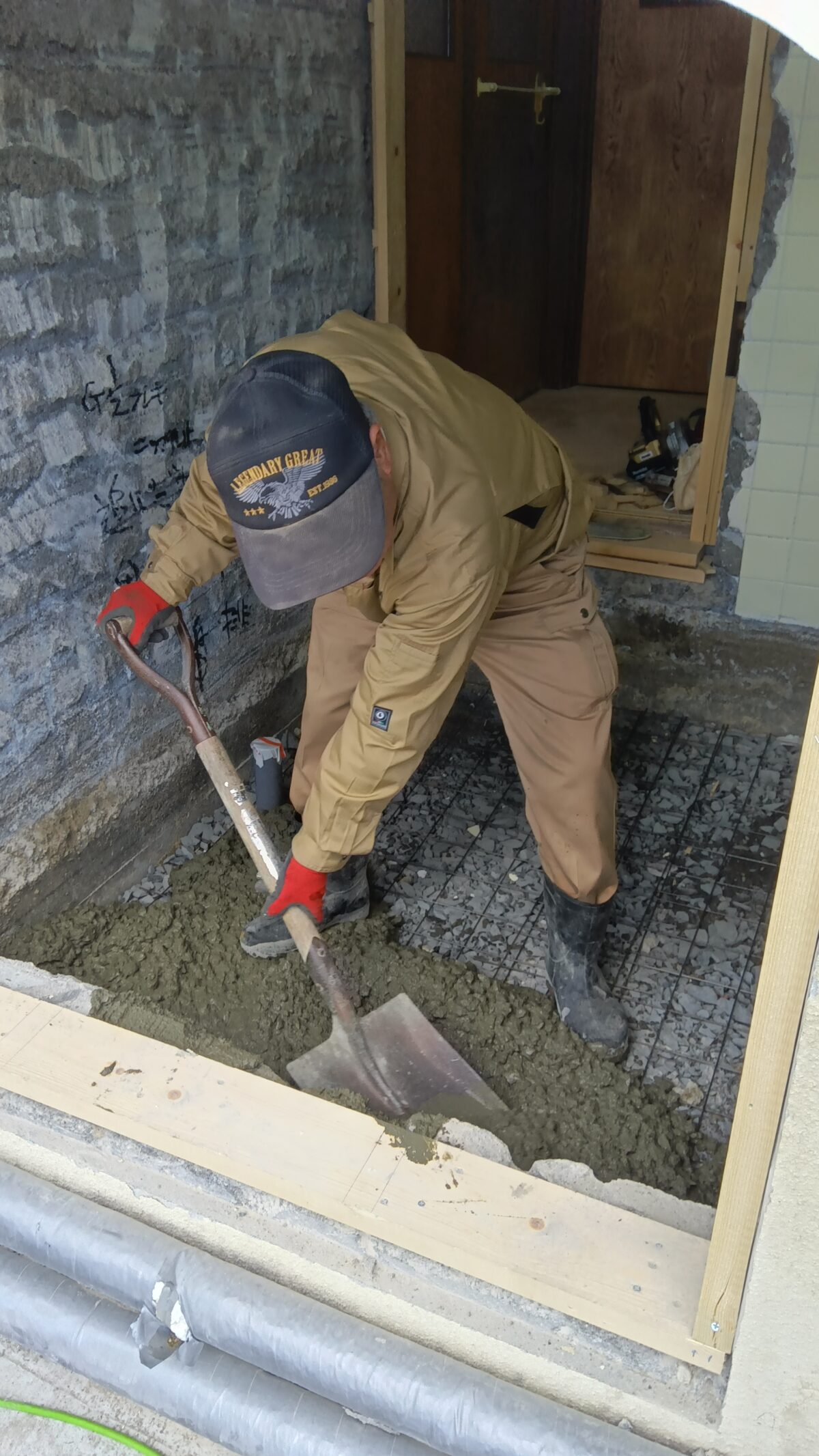 お風呂は解体が終了し、コンクリートを敷きました。