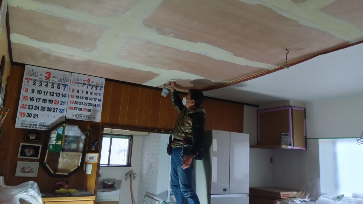 大崎市鹿島台 平渡地区 O様邸 塗り壁ベニヤ重ね貼りクロス工事