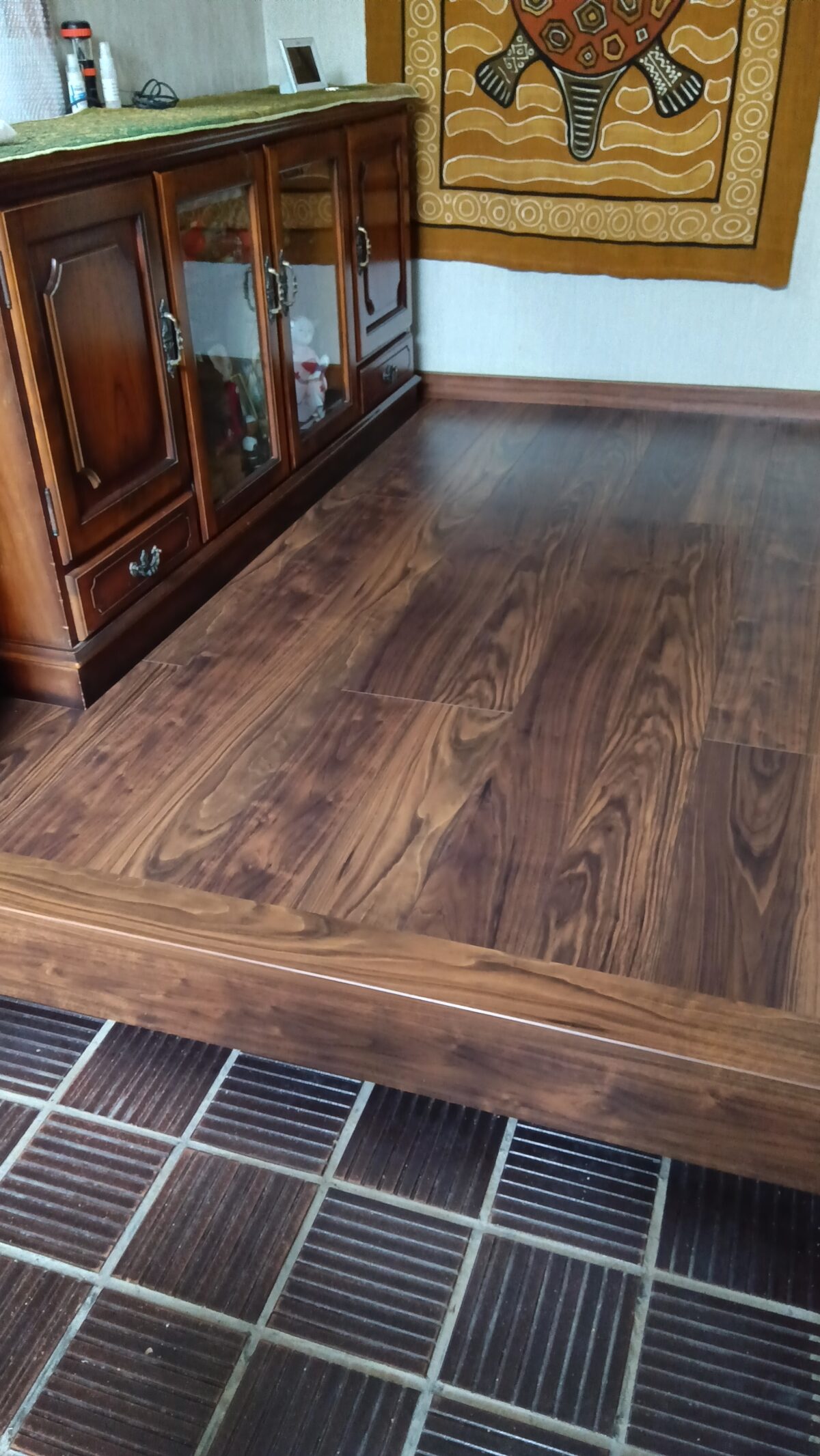 お風呂とキッチンの交換工事、玄関&キッチンの床重ね貼り工事が完了しました。