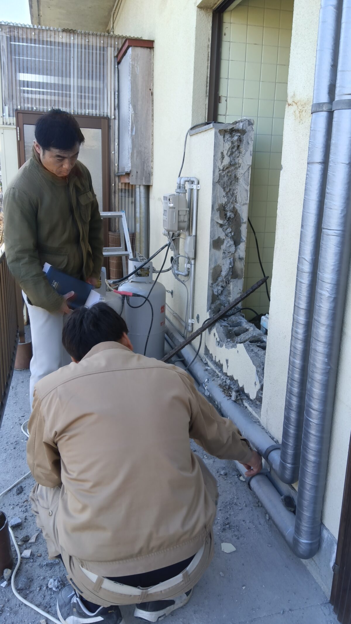 お風呂とキッチン交換工事 お風呂とキッチン交換工事 遠田郡美里町北浦地区 A様邸 お風呂とキッチンの交換工事、玄関&キッチンの床重ね貼り工事をさせていただいております。 まずは既存のお風呂と外壁を解体します。 2026年03月2日