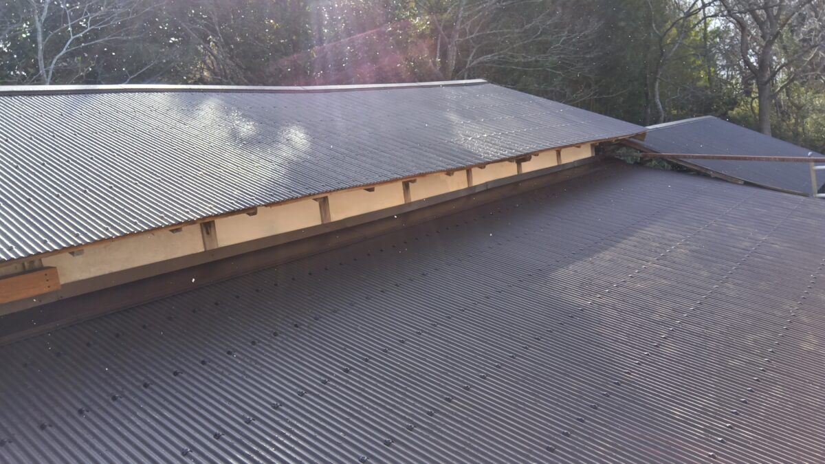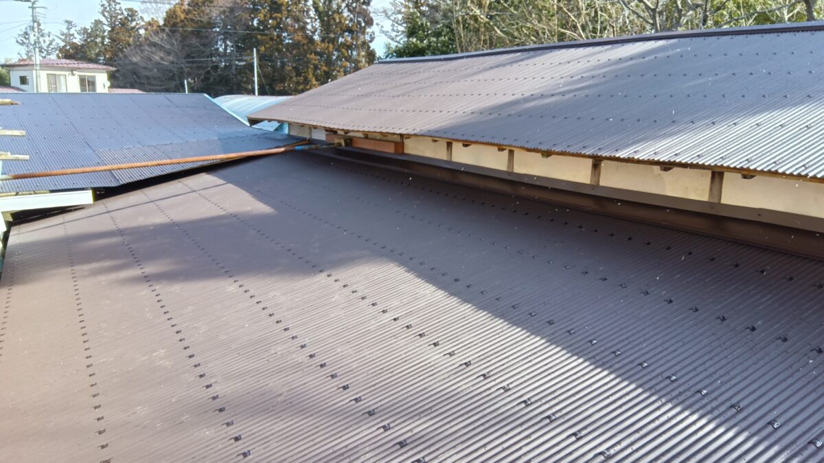 屋根葺き替え工事 屋根葺き替え工事 遠田郡美里町南郷地区 H様邸 作業場の屋根の葺き替え工事をさせていただいております。 既存のトタンを剥がし、12㎜の針葉樹合板とルーフィング(防水シート)を貼りました。 2026年01月19日