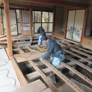 石巻市北村 中ノ沢地区 Y様邸の座敷リフォーム工事が着工しました。 昨年、水廻りリフォーム工事をさせて頂いた、石巻市北村 中ノ沢地区 Y様邸で、今回は通し座敷リフォーム工事や西側外壁(耐震工事含む)などをさせて頂く事となりました。 «座敷床解体工事» «西側外壁耐震補強工事» 畳床からフローリング床にするため、解体工事を行っています。 母屋西側の外壁を耐震補強する事から、既存外壁やサッシを全て解体しました。 «神棚解体工事» 今回の通し座敷リフォーム工事で、神棚もキレイにリフォームさせて頂く事から、神棚も解体を行っていきます。 2023年01月13日